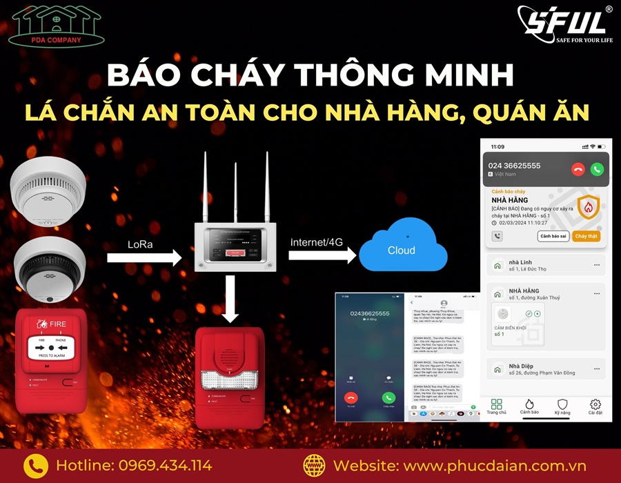 Hiểu rõ đặc thù không gian và nhu cầu thực tế của các quán cafe, Phúc Đại An giới thiệu giải pháp báo cháy thông minh Sful & Lora, ứng dụng công nghệ tiên tiến giúp đảm bảo an toàn, tiết kiệm và dễ dàng quản lý.