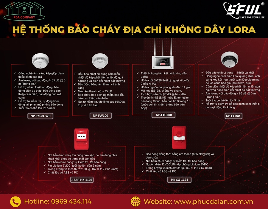 Với công nghệ Sful & Lora tiên tiến, Phúc Đại An không chỉ mang đến sản phẩm chất lượng mà còn đem lại giải pháp toàn diện về cảnh báo cháy sớm, giúp mỗi công trình, khu dân cư hay doanh nghiệp luôn yên tâm hoạt động trong môi trường an toàn, chủ động và bền vững.