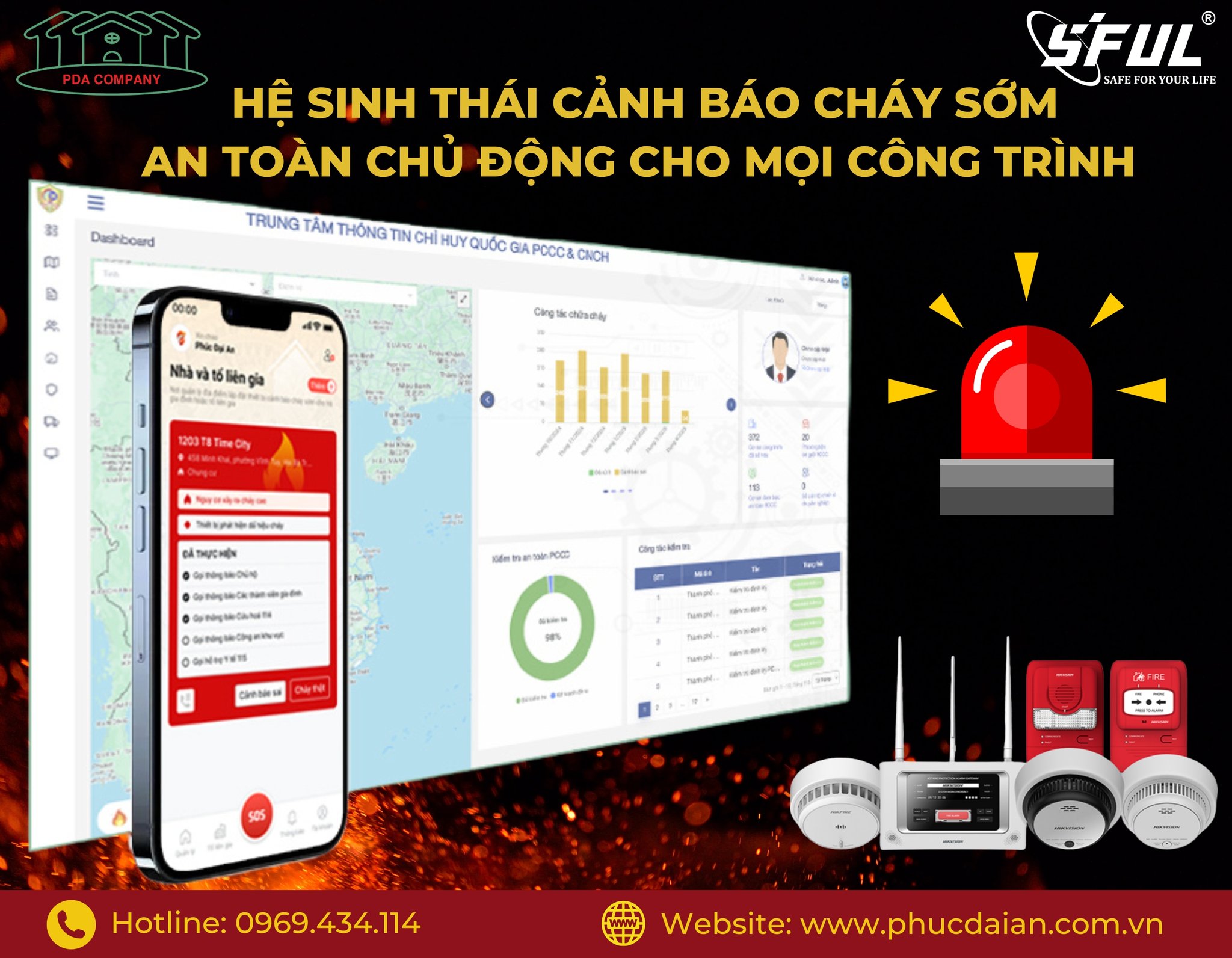 Trong bối cảnh nhu cầu an toàn ngày càng cao, cảnh báo cháy sớm quy mô lớn không chỉ là giải pháp kỹ thuật, mà còn là chiến lược quan trọng để bảo vệ sự phát triển bền vững của doanh nghiệp và xã hội. Với sự đồng hành của Phúc Đại An, kết hợp công nghệ Sful và Lora, các công trình từ khu công nghiệp, tòa nhà cao tầng đến trung tâm thương mại đều có thể vận hành trong môi trường an toàn, giảm thiểu rủi ro và nâng cao uy tín thương hiệu.